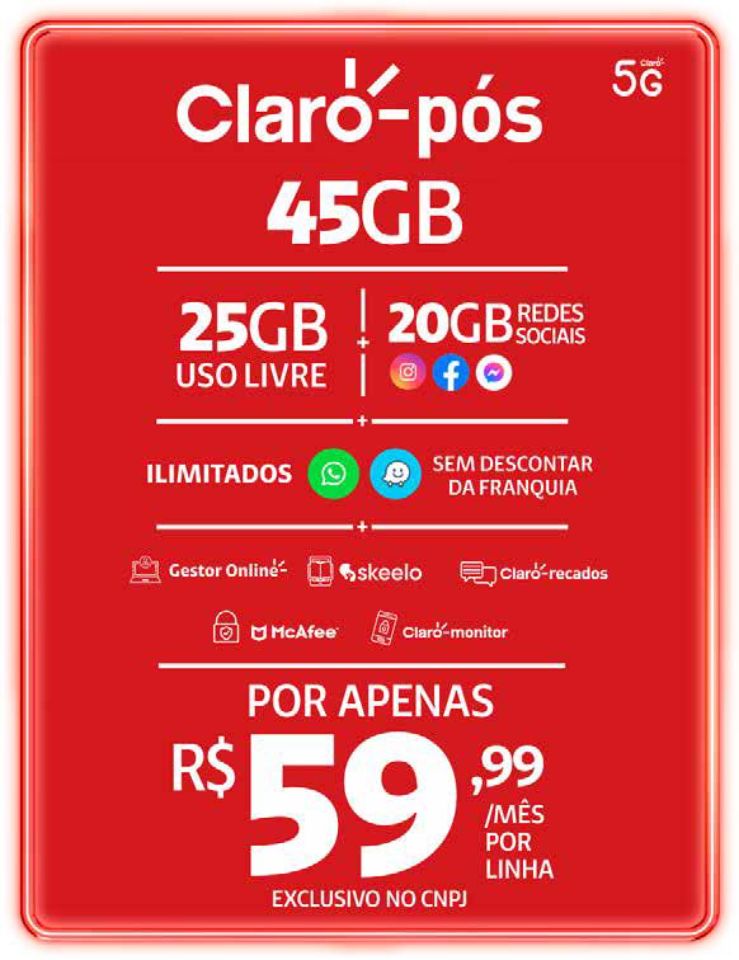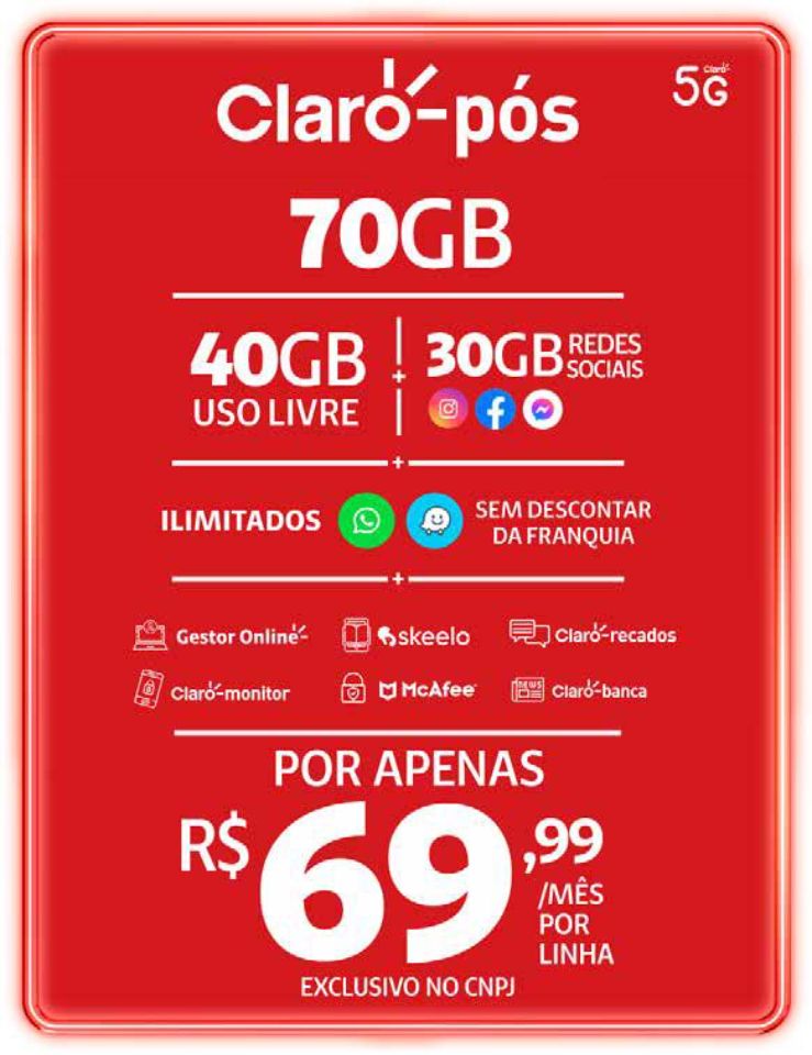 Empresas que já possuem internet fixa ou optarem por solicitar a linha móvel com internet fixa ganharão 30 GB sem cobrança adicional.